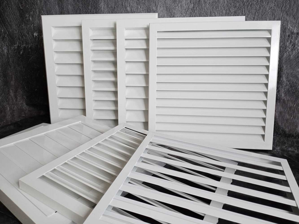 Наиболее распространенным типом наружных решеток являются жалюзийные решетки. Их конструкция включает раму и неподвижно закрепленные под углом ламели (жалюзи). Такая решетка жалюзийная имеет ряд преимуществ для наружного использования: