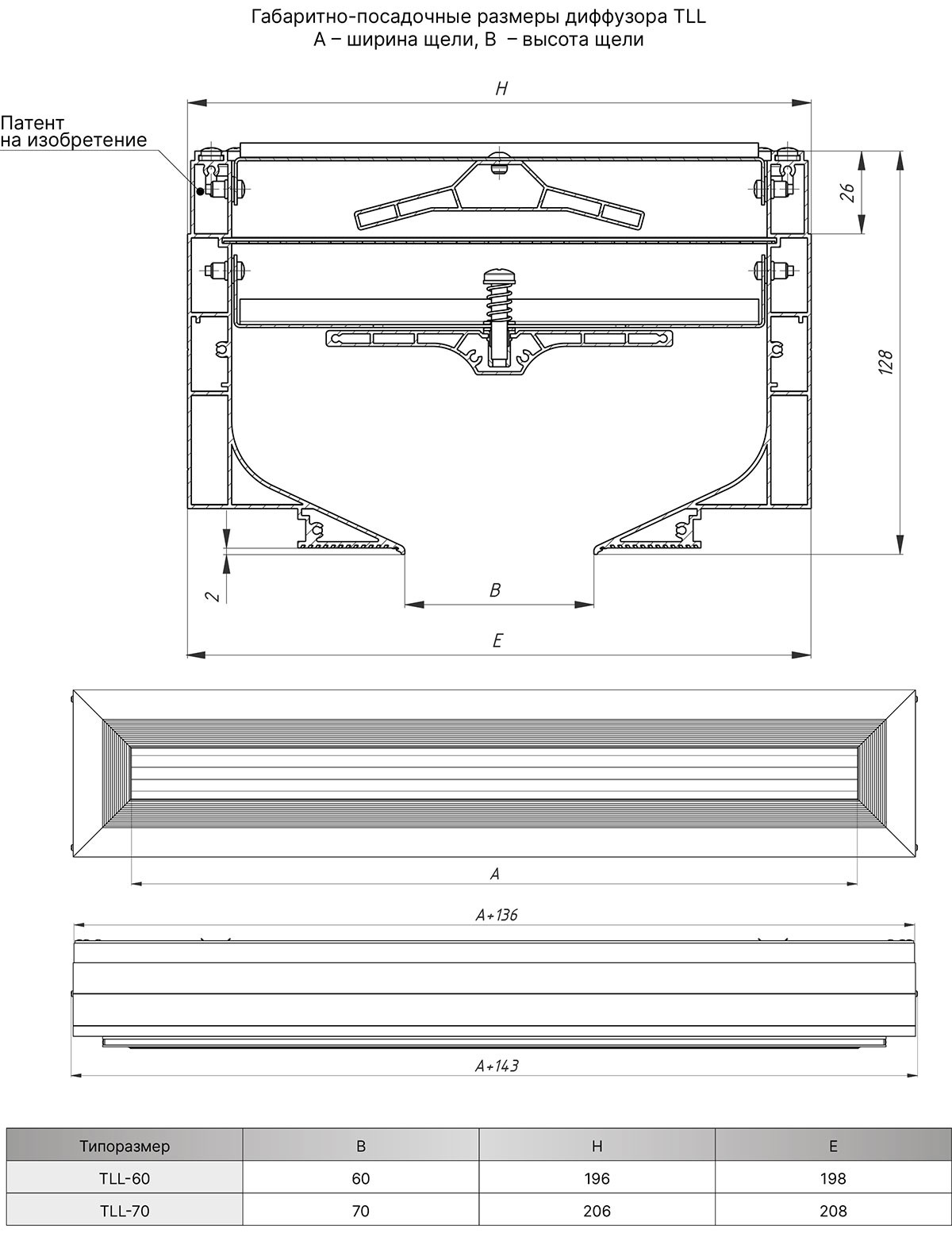 TLL (large) скрытый щелевой диффузор